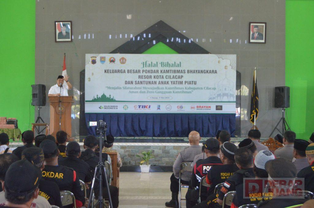 Kabupaten Cilacap – Menjalin silaturahmi, Ketua DPC PDI Perjuangan sekaligus Ketua DPRD Kabupaten Cilacap, Taufik Nurhidayat menghadiri undangan Halal Bihalal Keluarga Besar Pokdar Kamtibmas Bhayangkara Resor Kota Cilacap dan Santunan Anak Yatim Piatu di Gedung IPHI, Kelurahan Gumilir, Kecamatan Cilacap Utara, Minggu (05/05/2024).