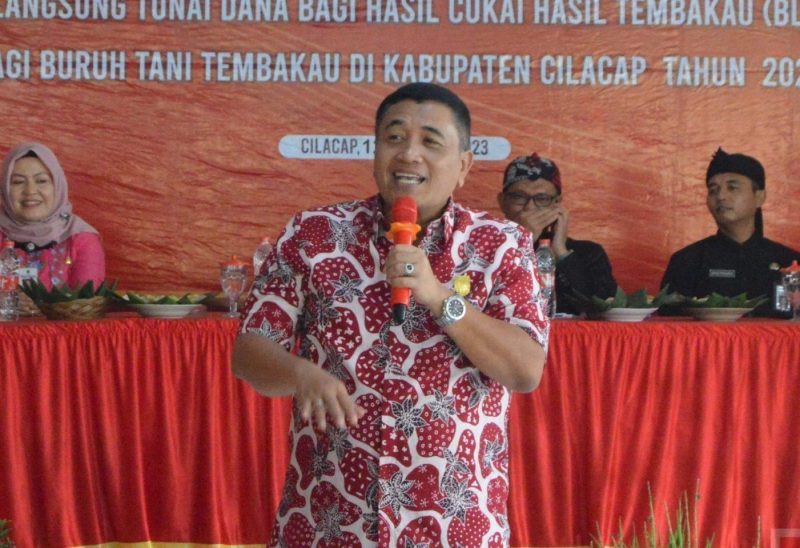 Kabupaten Cilacap – Ketua DPC PDI Perjuangan sekaligus Ketua DPRD Cilacap, Taufik Nurhidayat hadir dalam Penyaluran Bantuan Langsung Tunai Dana Bagi Hasil Cukai Hasil Tembakau (BLT DBHCHT) Bagi Buruh Tani Tembakau di Kabupaten Cilacap Tahun 2023, di Balai Desa Cinyawang, Kecamatan Patimuan, Kamis (12/10/2023).