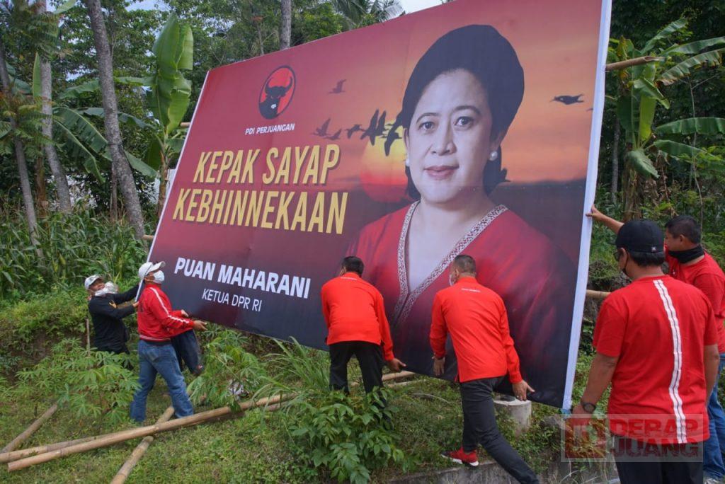 Kabupaten Boyolali – Dengan semangat gotongroyong yang menjadi jati diri PDI Perjuangan, Pengurus DPC PDI Perjuangan Kab. Boyolali memasang Baliho bergambar Ketua DPP PDI Perjuangan, Puan Maharani. Kegiatan tersebut diawali dengan pertemuan Pengurus DPC PDI Perjuangan Kab. Boyolali, serta Anggota Fraksi PDI Perjuangan DPRD Kab. Boyolali, yang dilaksanakan di Gedung Panti Marhaen DPC PDI Perjuangan Kab. Boyolali. Kemudian kegiatan dilanjutkan dengan pemasangan di setiap kecamatan yang ada di Kab. Boyolali, Kamis (15/7/2021).