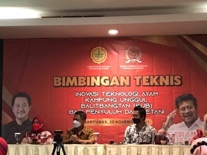 Kabupaten Banyumas – Anggota Fraksi PDI Perjuangan DPR RI, H. Sunarna, S.E., M.Hum bersama Badan Penelitian dan Pengembangan Pertanian (Balitbangtan) Kementerian Pertanian Republik Indonesia menggelar Bimbingan Teknis (Bimtek) yang bertajuk, “Inovasi Teknologi Ayam Kampung Unggul Balitbangtan (KUB) Bagi Penyuluh dan Petani”. Kegiatan yang diselenggarakan di Ball Room, Hotel Aston Imperium Purwokerto, dihadiri oleh Dinas Perikanan dan Peternakan Kab. Banyumas, Balai Pengkajian Teknologi Pertanian (BPTP) Jawa Tengah, Anggota Fraksi PDI Perjuangan DPRD Kab. Banyumas, Rellya Venny Octalina, serta Kelompok Ternak Kab. Banyumas, Selasa (30/11/2021).
