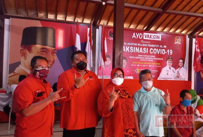 Agustina Wilujeng yang juga Bendahara DPD PDI Perjuangan Jawa  Tengah mengatakan,”hal ini dilaksanakan atas perintah Mbak Puan Maharani, yaitu Kader Partai agar turun dan membantu vaksinasi. Di Sragen setiap hari, ada 500 sampai 600 yang kita vaksin. Sasarannya adalah warga yang belum divaksin aja. Mana titik yang capaiannya masih rendah, di situ teman-teman membuat kegiatan,” tuturnya.