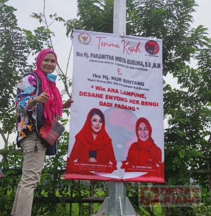 Kabupaten Brebes – Anggota DPR RI Fraksi PDI PDI Perjuangan, Hj. Paramitha Widya Kusuma menyalurkan bantuan untuk masyarakat Brebes berupa PJUTS (Penerangan Jalan Umum Tenaga Surya) melalui KomandanTe, Hj. Nur Bintang di Desa Kalilangkap dan Desa Kalinusu, Kec. Bumiayu, Sabtu (13/11/2021).