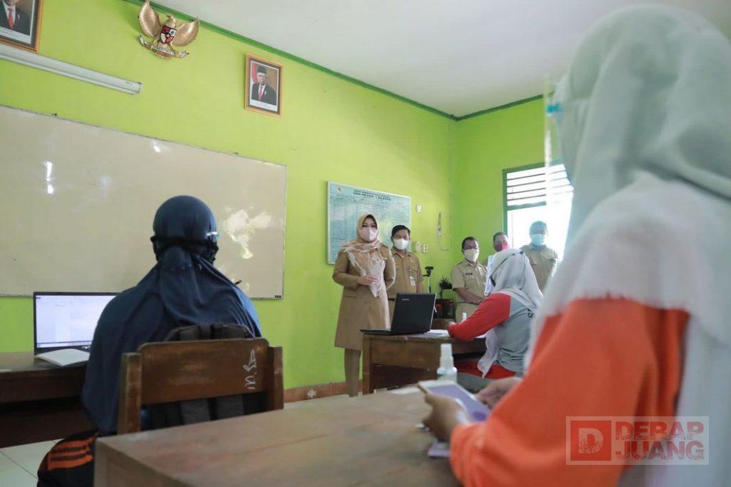 Bupati Klaten, Hj. Sri Mulyani meninjau pelaksanaan PTM di beberapa sekolah di Kab. Klaten