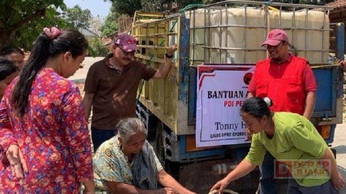 Kabupaten Grobogan – Tony Hidayanto selaku bakal calon legislatif (Bacaleg) dari PDI Perjuangan menunjukkan kepeduliannya terhadap kesejahteraan masyarakat dengan memberikan pasokan bantuan air bersih kepada warga Dusun Kuniran di Desa Dokoro, Kecamatan Wirosari, Sabtu (16/09/2023).