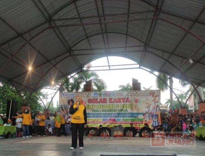 Kabupaten Blora – Wakil Bupati Blora Tri Yuli Setyowati atau yang akrab disapa Mbak Etik menghadiri gelar karya seni dengan tema “Kearifan Lokal” yang diselenggarakan oleh SMPN 5 Cepu di taman serbaguna Tukbuntung, Sabtu (18/05/2024).