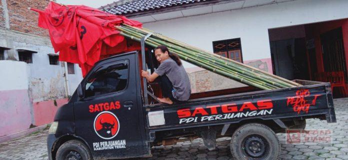 Ketua DPC PDI Perjuangan Kab.Tegal, Rustoyo, memberikan Instruksi terkait pemasangan bendera Partai kepada Kader Komunitas Juang Kab. Tegal, melalui Asisten Mentor Juang Pengampu Komunitas Juang Kab. Tegal, AMJ Arif DN. Ratusan bendera Partai dipasang di sudut Kota Slawi, meliputi, Bundaran Taman Bunga Slawi, Sentra Industri Kagok, serta wilayah lainnya.