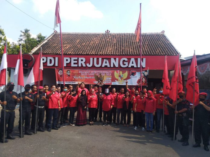 Kabupaten Sragen – DPC PDI Perjuangan Kabupaten Sragen memberikan instruksi kepada kader PDI Perjuangan Kabupaten Sragen untuk memasang bendera Partai di seluruh kecamatan yang ada di Kabupaten Sragen. Pemasangan bendera Partai dilakukan sebagai wujud respon PDI Perjuangan Kabupaten Sragen terhadap pembakaran bendera PDI Perjuangan dalam aksi demonstrasi menolak Rancangan Undang-Undang Haluan Ideologi Pancasila (RUU HIP) pada hari Rabu, (24/6/2020).
