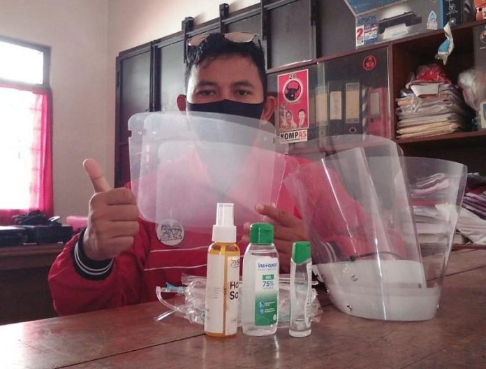 Masker, Hand Sanitizer, serta Face Shield dalam masa Pandemi Covid-19 seperti saat ini nampaknya menjadi suatu kebutuhan pelengkap dalam melakukan aktifitas masyarakat di tahapan new normal. Hal tersebut dimanfaatkan oleh R. Erwin untuk melakukan wirausaha membuat Face Shield. Walaupun negara ini masih dalam masa Pandemi Covid-19, akan tetapi harus tetap semangat untuk bangkit dalam menjalankan roda kehidupan serta kebutuhan taraf hidup.