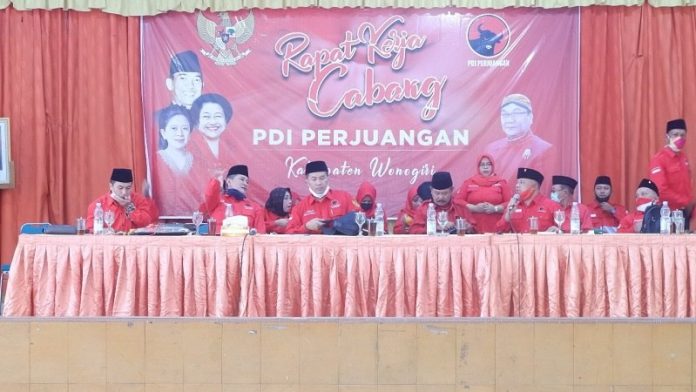 Kabupaten Wonogiri – Dewan Pimpinan Cabang (DPC) PDI Perjuangan Kabupaten Wonogiri saat ini telah mempersiapkan penyeragaman pengurusnya dari tingkatan DPC sampai Anak Ranting. Hal ini disampaikan oleh Ketua DPC PDI Perjuangan Kabupaten Wonogiri sekaligus Bupati Wonogiri, Joko Sutopo “Mas Jekek” pada saat Rapat Kerja Cabang (Rakercab) yang dilaksanakan di Gedung PGRI Wonogiri (27/6/2020).