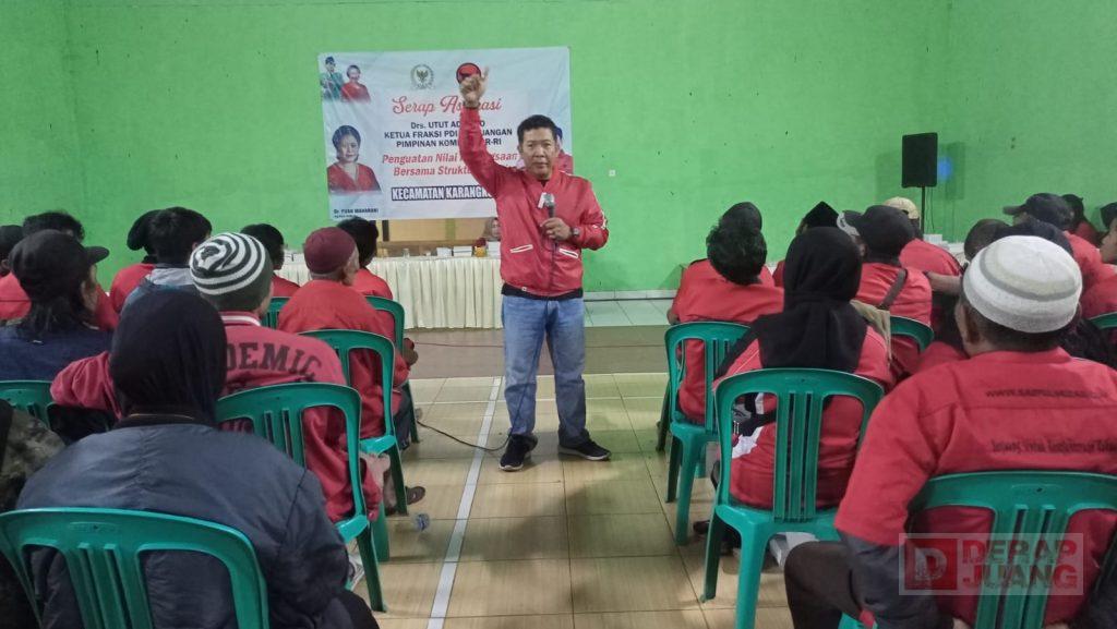 Kabupaten Banjarnegara – Drs. Utut Adianto, selaku Ketua Fraksi PDI Perjuangan DPR RI, Pimpinan Komisi 1 DPR RI, menyelenggarakan Serap Aspirasi dengan tema, “Penguatan Nilai Kebangsaan Bersama Struktur Partai”, di Dapil 1, 5, 6 yang meliputi Kecamatan Banjarnegara, Karangkobar dan Pejawaran. Dalam kesempatan ini, Utut Adianto yang diwakili oleh Aryo Indrasworo, S.E.,M.E., selaku Staff Ahli, bertemu dengan Struktural PAC PDI Perjuangan Kecamatan Karangkobar, Jumat (7/10/2022).