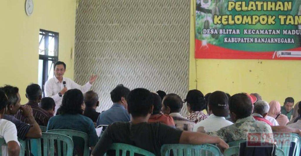 Kabupaten Banjarnegara – Anggota DPRD Banjarnegara Komisi I, Wahju Djatmika yang juga Sekretaris Fraksi PDI Perjuangan hadiri pelatihan kelompok tani di Aula Gedung Serbaguna Desa Blitar, Kecamatan Madukara yang dihadiri oleh Gapoktan Tirta Rukun Tani, Sabtu (01/11/2025).