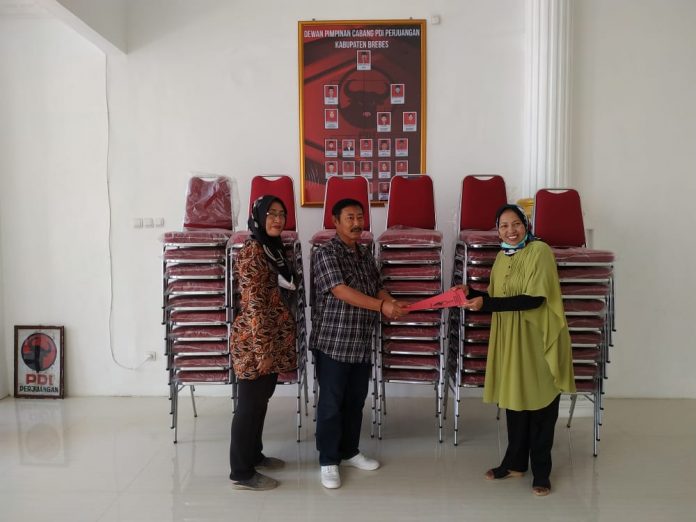 Kabupaten Brebes – Salah satu Kader PDI Perjuangan Kab. Brebes, yang juga Bupati Brebes, Hj. Idza Priyanti, S.E., M.H., memberikan bantuan berupa kursi rapat kepada DPC PDI Perjuangan Kab. Brebes. Kursi rapat yang berjumlah 100 buah tersebut, diterima langsung oleh Ketua DPC PDI Perjuangan Kab. Brebes, H. Indra Kusuma, Kamis (1/10/2020).