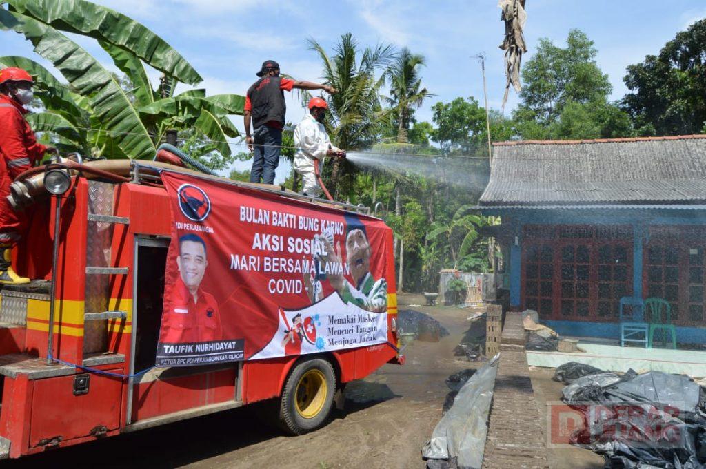 Kabupaten Cilacap – Angka penyebaran Covid-19 yang semakin tinggi di Kab. Cilacap, DPC PDI Perjuangan Kab. Cilacap tanggap cepat melakukan penyemprotan disinfektan. Masih dalam peringatan Bulan Bung Karno, kegiatan penyemprotan dimulai dari Kecamatan Adipala, serta Kecamatan Kesugihan, untuk mencegah penyebaran Covid-19, Sabtu (26/6/2021).