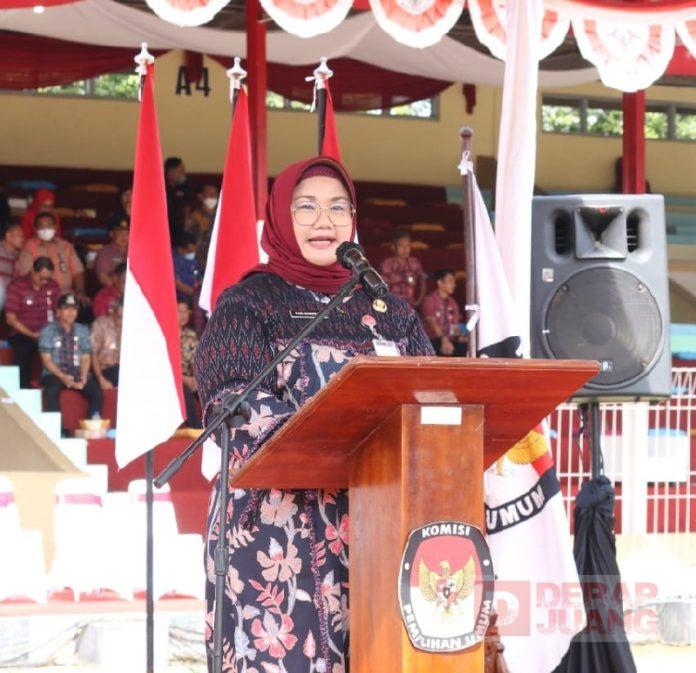 Mbak Yuni dalam sambutanya mengapresiasi KPU Sragen yang telah menggelar pelantikan dan apel Pemilu 2024 ini secara spektakuler. Ia menyampaikan selamat dan harapan kepada PPS yang telah dilantik agar dapat bekerja secara profesional, mempunyai integritas yang tinggi, jujur, adil, serta menjaga netralitas.