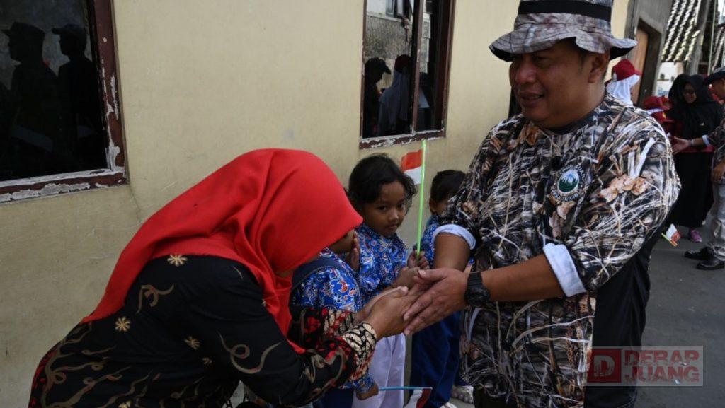 Tak cukup bersalaman, sesekali Yunianto juga nampak menyapa sekaligus bercengkrama. Beberapa pesan diutarakan olehnya agar para pelajar itu terus semangat menimba ilmu.