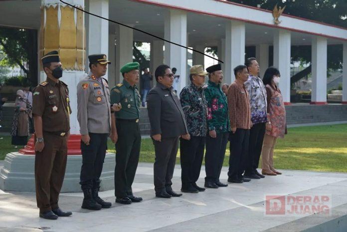 Kabupaten Temanggung – Ketua DPRD Temanggung, Yunianto bersama jajaran Forkopimda menggelar apel siaga dalam rangka mewujudkan Pemilihan Kepala Desa (Pilkades) tahun 2022 yang demokratis. Acara yang diselenggarakan di Alun-alun Temanggung tersebut diikuti oleh para kontestan Pilkades bersama institusi-institusi yang memiliki otoritas dalam mengelola Pilkades, Kamis (23/6/2022).