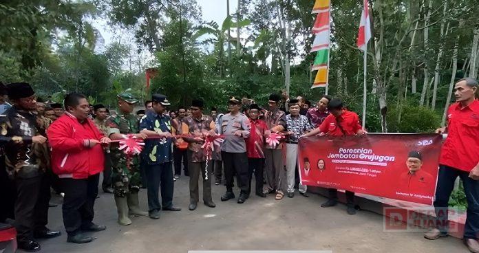 Kabupaten Temanggung – Ketua DPRD Temanggung, Yunianto meresmikan langsung hasil pembangunan Jembatan Grujugan di Desa Margolelo, Kecamatan Kandangan. Jembatan Grujugan sendiri merupakan infrastruktur yang dibangun untuk meningkatkan konektivitas antara Desa Margolelo dan Desa Blimbing, Minggu (9/4/2023).