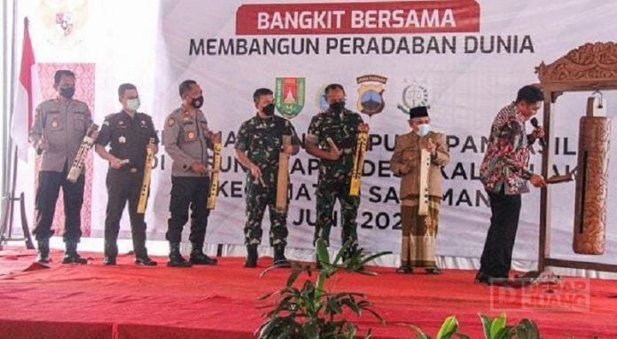 Kabupaten Magelang – Bupati Magelang, Zaenal Arifin bersama Kasi Ter Kasrem Korem 072/Pamungkas, Kolonel Infanteri Gempar Sebayang dan jajaran Forkopimda Kabupaten Magelang mencanangkan Kampung Pancasila di 21 Kecamatan secara serempak yang terpusat di Dusun Ngapus, Desa Kalisalak, Kecamatan Salaman, Selasa (28/6/2022).