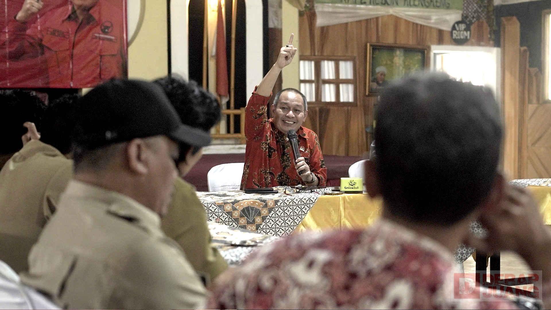 Foto: Wahju Djatmika (berdiri depan) saat menggelar reses bersama jajaran pengurus PAC dan KSB Ranting PDI Perjuangan di Kecamatan Sigaluh, Minggu (26/10/2025).