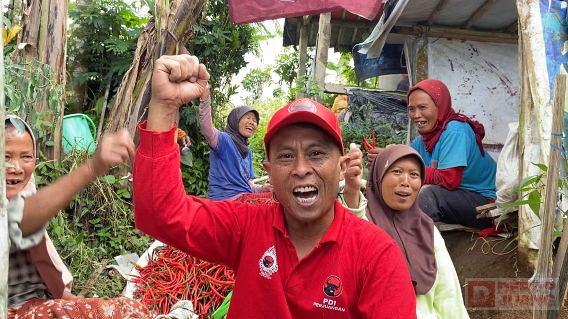 Foto: Purwono (berbaju merah – mengepalkan tangan) Anggota DPRD Banjarnegara Fraksi PDI Perjuangan, bersama para petani usai memanen cabai di ladang miliknya
