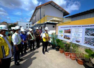Kota Surakarta - Walikota Surakarta, Gibran Rakabuming mendampingi Menteri PUPR, Basuki Hadimuljono, meninjau pembangunan Pasar Legi. Peninjauan tersebut dilaksanakan pada Sabtu, (27/3/2021).