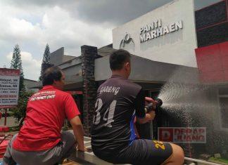 Kabupaten Boyolali - Kader Komunitas Juang Kab. Boyolali melakukan kegiatan penyemprotan disinfektan di lingkungan Kantor DPC PDI Perjuangan Kab. Boyolali, Rabu (17/3/2021).