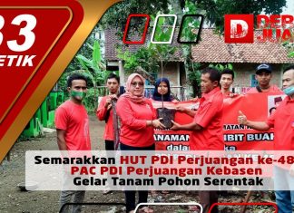 Kabupaten Tegal - DPC PDI Perjuangan Kab. Tegal melakukan gerakan penanaman pohon serentak. Kegiatan yang dilaksanakan untuk menyemarakkan HUT PDI Perjuangan ke-48,...