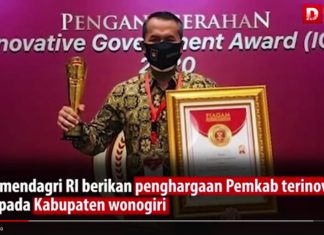 Wonogiri Sabet Penghargaan Sebagai Daerah Terinovatif di Indonesia
