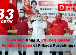 Kabupaten Purbalingga - PDI Perjuangan Kembali berjaya di Pilkada Purbalingga. Hal ini dipastikan setelah Pasangan Calon (Paslon) Dyah Hayuning Pratiwi-Sudono (Tiwi-Dono) berhasil...