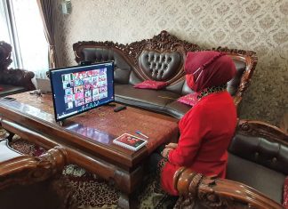 Ketua DPC PDI Perjuangan Kab. Grobogan Hj. Sri Sumarni mengikuti rapat virtual