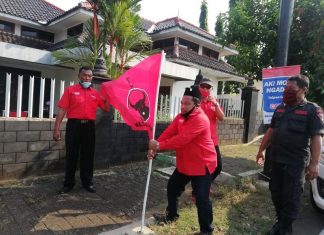 Kabupaten Blora - Kader PDI Perjuangan Blora mengibarkan bendera Partai di perkampungan dan rumah-rumah sebagai respon membentuk kesolidan kader, Kamis (2/7/2020).