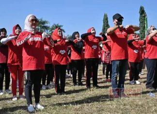 Purbalingga - El Komandan Tempur Elektoral DPC PDI Perjuangan Purbalingga, H.R. Bambang Irawan, S.H., M.M. menggelar senam sehat bersama Srikandi Banteng di...