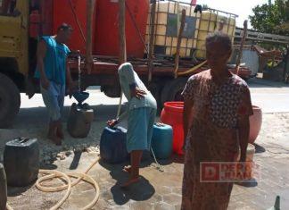 Kabupaten Blora - Anggota DPRD Kabupaten Blora Fraksi PDI Perjuangan Bibi Hastuti, distribusikan air bersih di Desa Gabusan Kecamatan Jati, Kabupaten Blora...