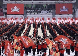 Jakarta – Satgas Cakra Buana yang merupakan bagian dari keluarga besar PDI Perjuangan mengikuti kegiatan gladi resik di Gelora Bung Karno (GBK)....