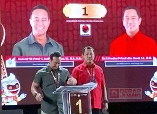 Kota Semarang - Pasangan calon (Paslon) Gubernur dan Wakil Gubernur Jawa Tengah usungan PDI Perjuangan, Andika Perkasa dan Hendrar Prihadi pada sesi penutupan...