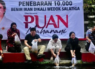Puan Maharani Tebar Bibit Ikan Produktif di Kaliwedok Kalitaman Salatiga
