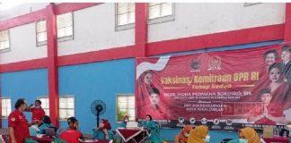 Kota Pekalongan - DPC PDI Perjuangan Kota Pekalongan bersama anggota DPR RI Fraksi PDI Perjuangan, Dede Indra Permana Sudiro menggelar vaksinasi dosis...
