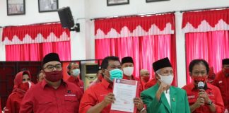 Ketua DPC PDI Perjuangan H. Akhmat Suyuti memberi instruksi khusus...