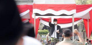 Kota Semarang - Wali Kota Semarang, Hendrar Prihadi tampil sebagai inspektur upacara pada Peringatan Hari Santri Nasional (HSN) tahun 2021 tingkat Kota...