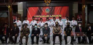 Kabupaten Banyumas - Bupati Banyumas, Ir. Achmad Husein mengukuhkan 9 anggota pasukan pengibar bendera (Paskibra) yang akan bertugas pada upacara peringatan HUT...