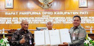 Kabupaten Pati - Ketua DPRD Kab. Pati, Ali Badrudin memimpin Rapat Paripurna yang diselenggarakan dengan tiga agenda sekaligus, di antaranya yang pertama...