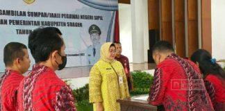 Kabupaten Sragen - Sebanyak 620 Calon Pegawai Negeri Sipil (CPNS) di Pamkab Sragen mengikuti pengangkatan Sumpah atau Janji CPNS menjadi PNS. Pengangkatan...