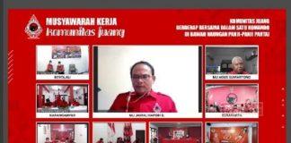 Kabupaten Sukoharjo - Komunitas Juang (KJ) Kabupaten Sukoharjo mengikuti Musyawarah Kerja Komunitas Juang (MKKJ) secara virtual lewat Zoom Meeting di Kantor DPC...