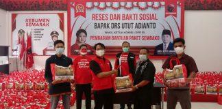 Kabupaten Kebumen- Ketua Fraksi PDI Perjuangan DPR RI, Drs. Utut Adianto membagikan seribu paket sembako untuk warga terdampak Covid-19 di Kabupaten Kebumen.