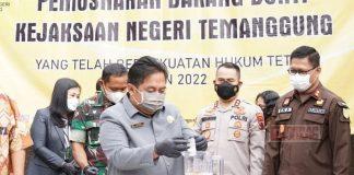 Kabupaten Temanggung - Bertempat di Halaman Kantor Kejaksaan Negeri Temanggung, sosok Ketua DPRD Temanggung, Yunianto memimpin giat pemusnahan barang bukti yang telah...