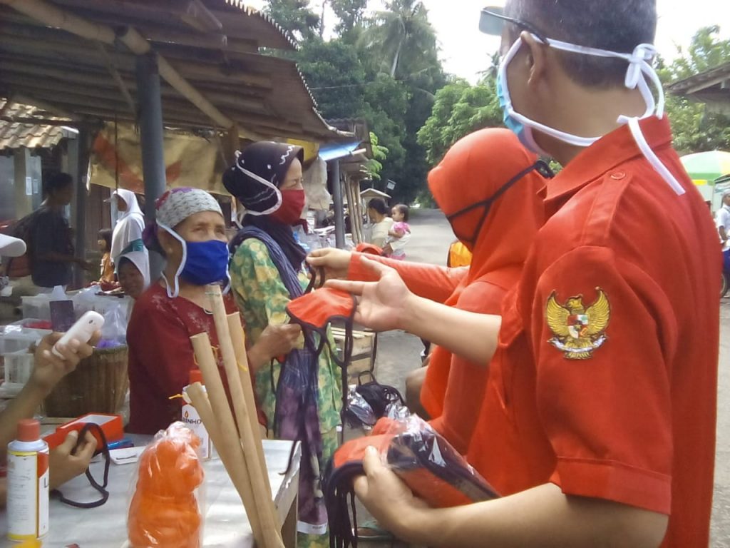 Peralatan cuci tangan berupa wastafel portable, sabun cuci tangan, dan tissue diserahkan kepada Kepala Pasar, sedangkan 1.000 masker langsung dibagikan ke seluruh pedagang dan pembeli yang ada di pasar.